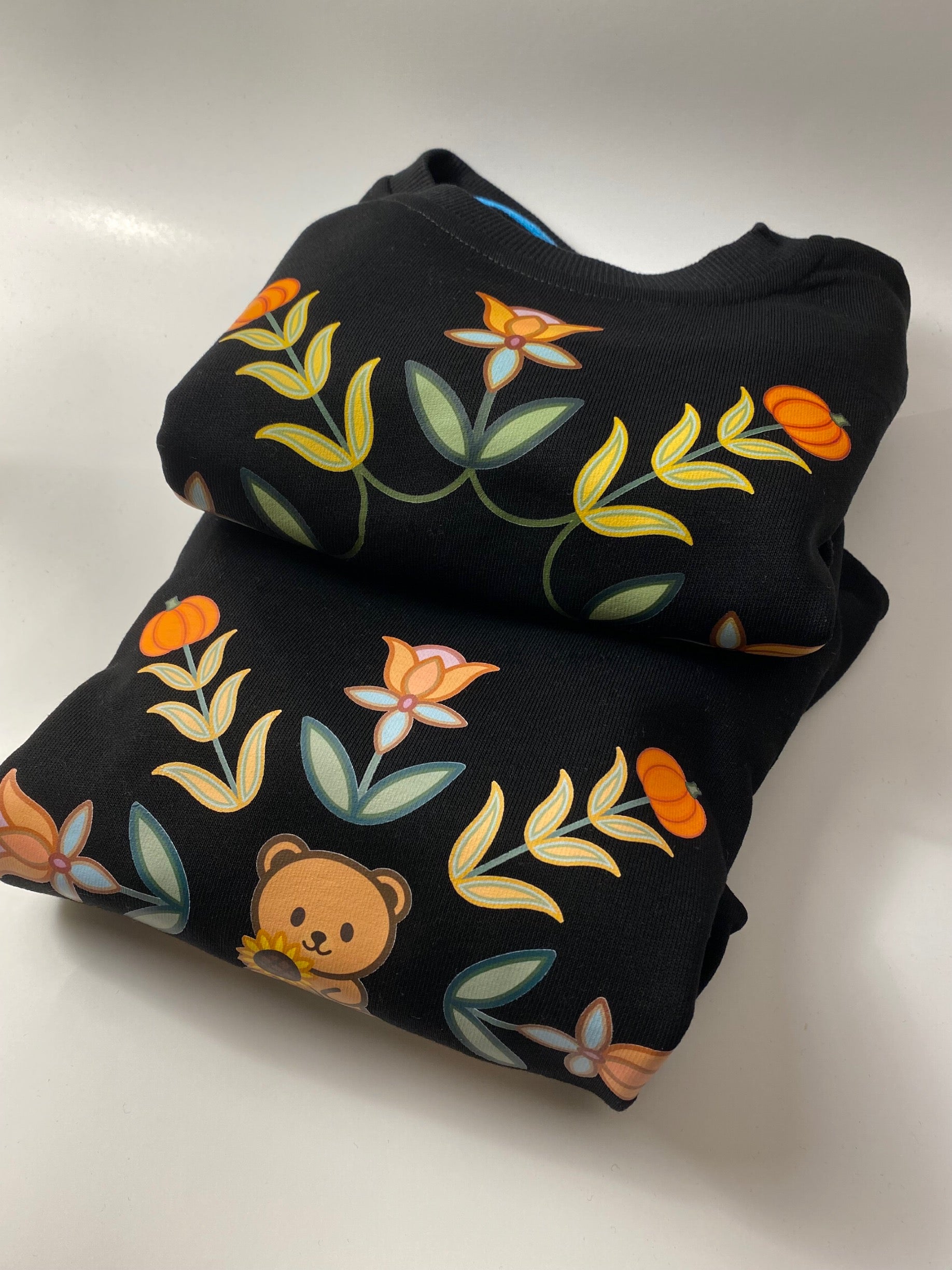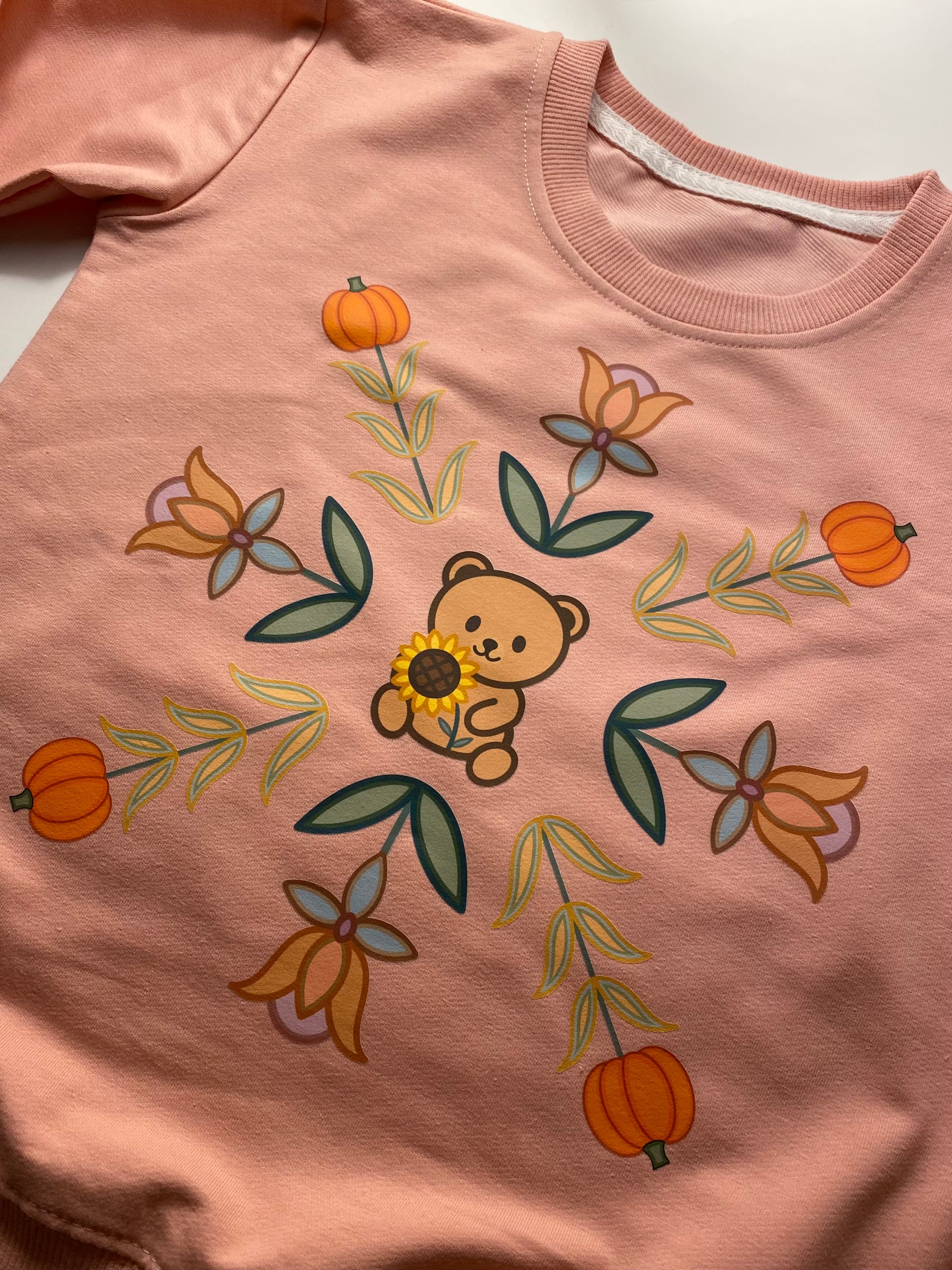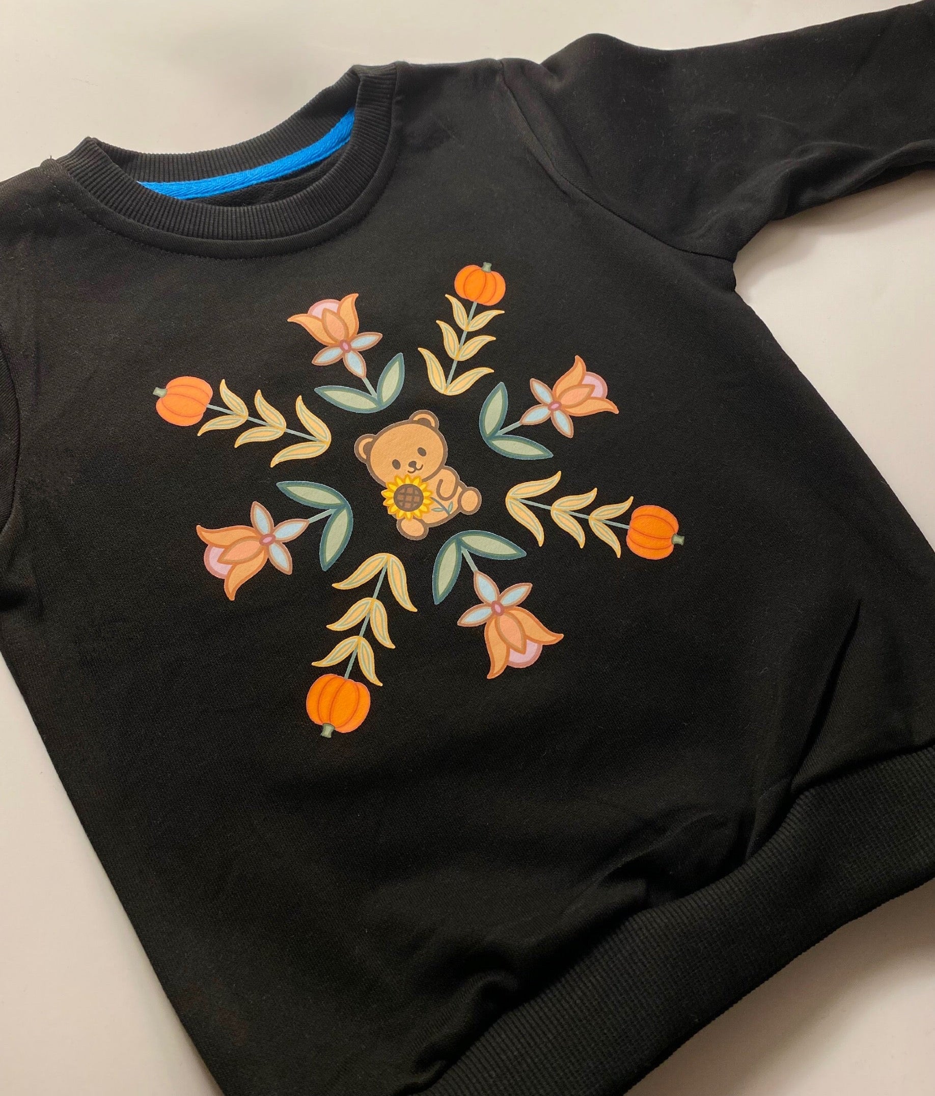 Celebrate cozy autumn days with our Fall Pumpkins & teddy bears, embodied with florals inspired by my handmade beadwork — giving this sweater a touch of identity 🌿