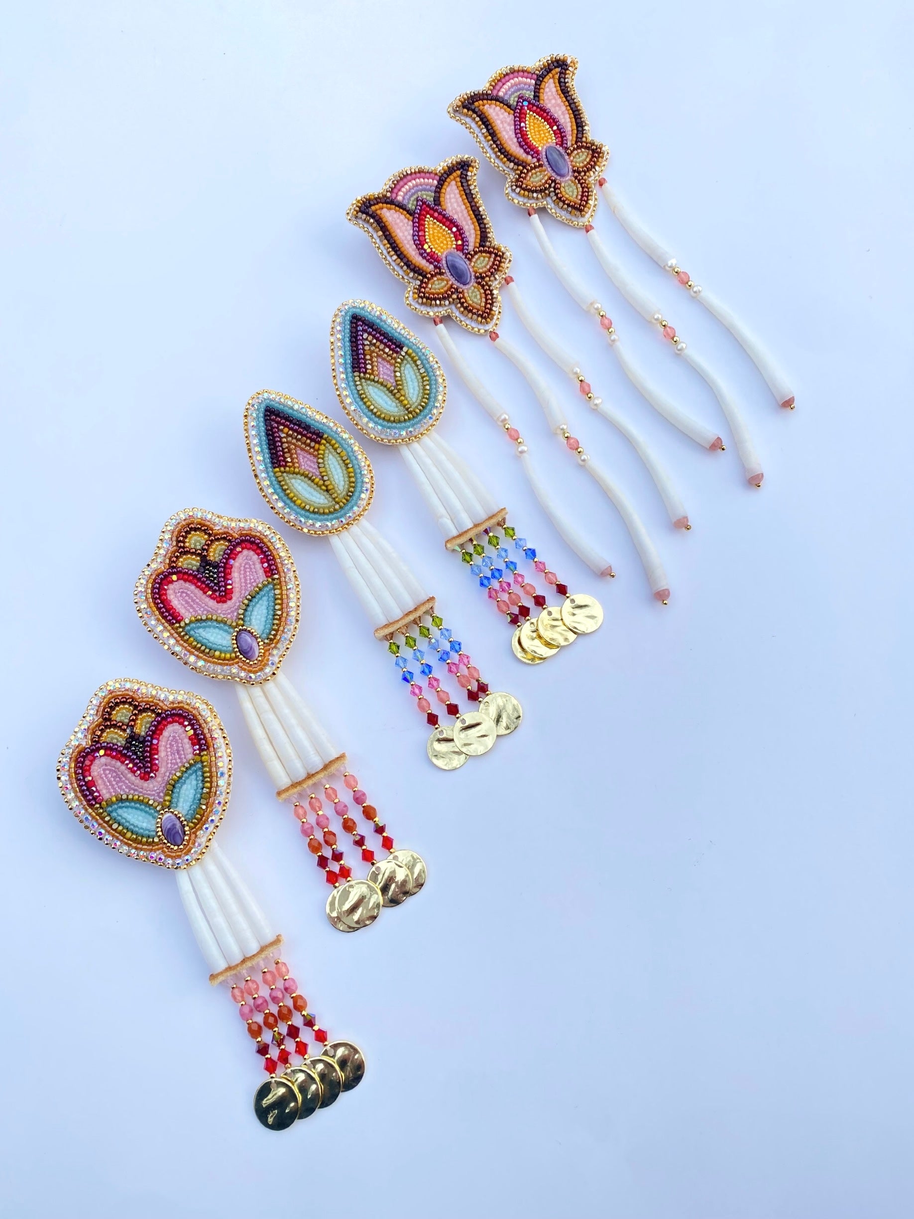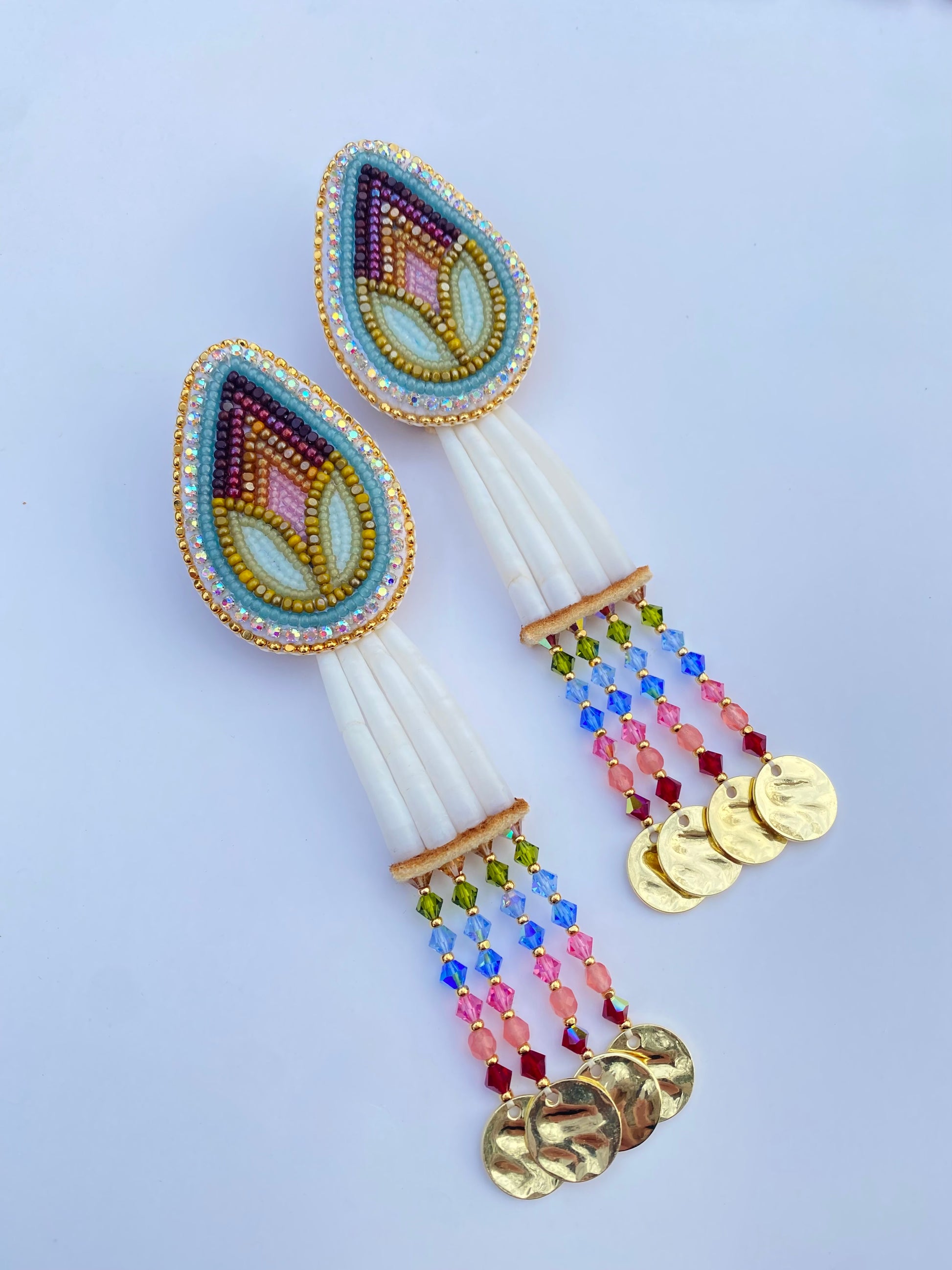 earrings - 7” long from fingernail post & dentalium drops are removable 🧸