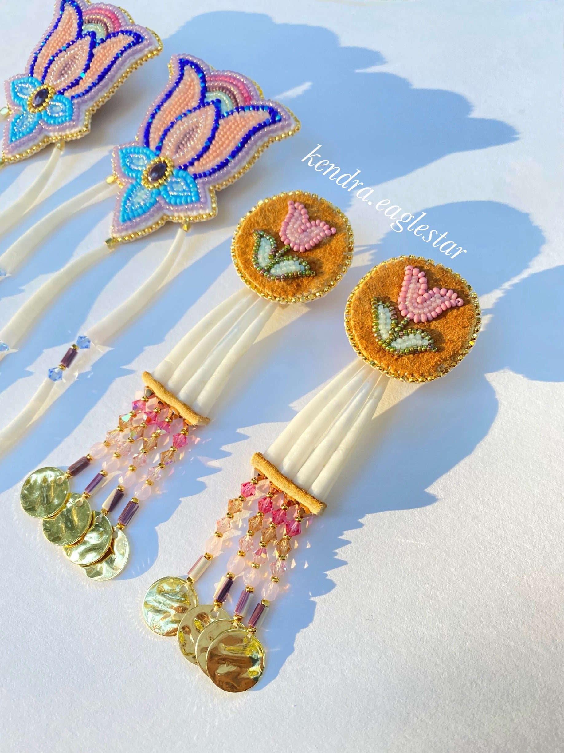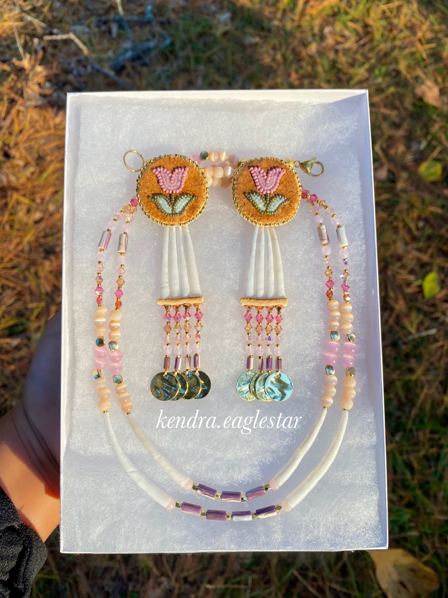 smoked hide wampum earrings & matching necklace 🤎🩰🪷